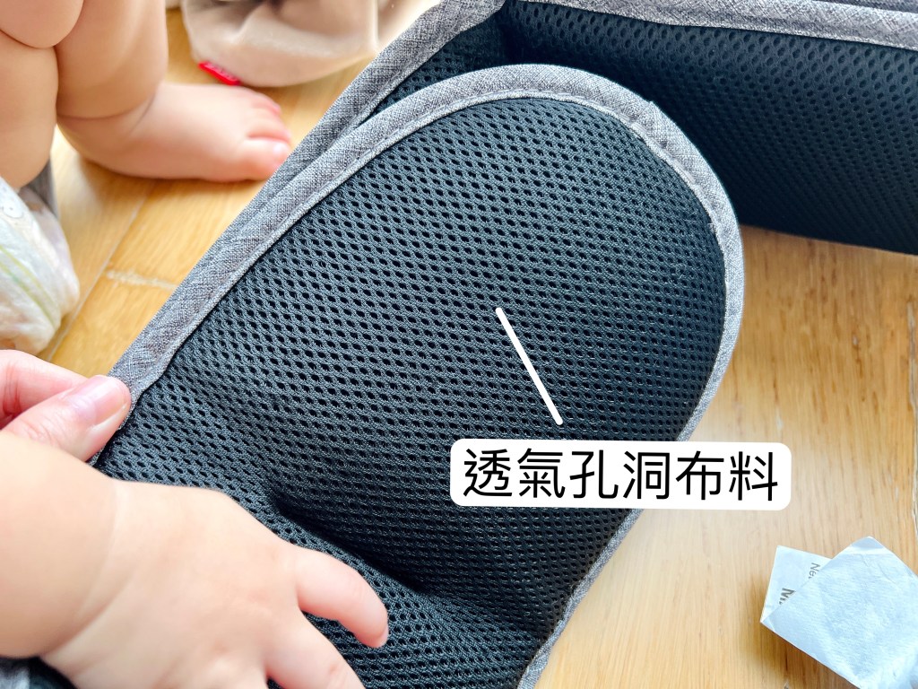 面向腰部是透氣孔洞布料,長時間綁著也清爽不黏膩。