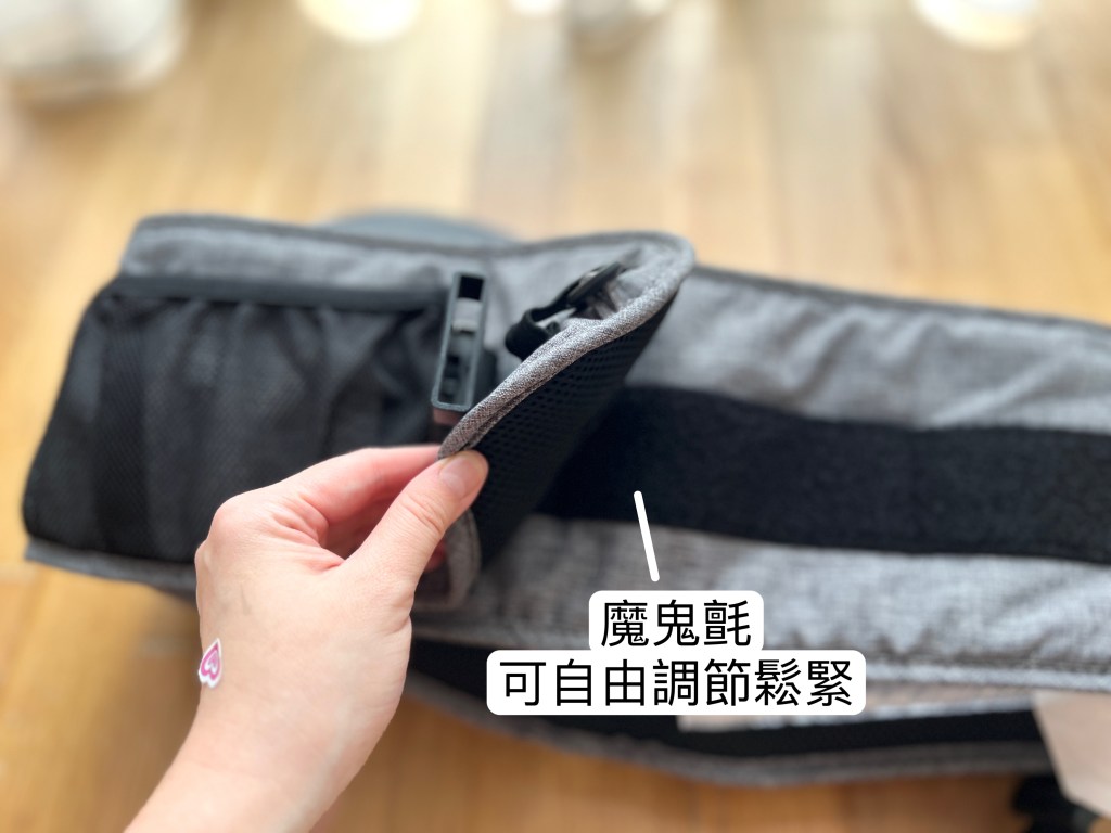 使用方式非常簡單,調整合適寬度把魔鬼氈黏上,穿過安全扣環扣起來,再扣上安全鎖,整理衣服和方向,把孩子抱上來坐就可以了!