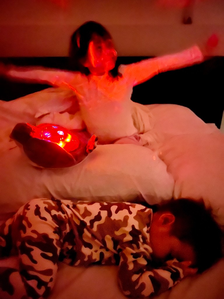 自動開啟柔和的燈光和音樂,隨和孩子自己接覺再度入睡,難搞孩子也能爭取一些時間不至於立刻崩潰!