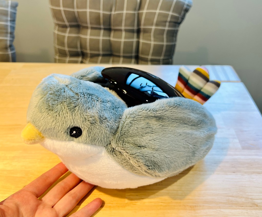 聲控感應的海洋好朋友是可愛的鯨魚小夜燈,能投影出超美麗水滴狀燈光,讓房間瞬間變成神秘彩色海洋,搭配各種催眠音樂,讓心情放鬆平靜下來,感應到哭聲時會自動開啟。