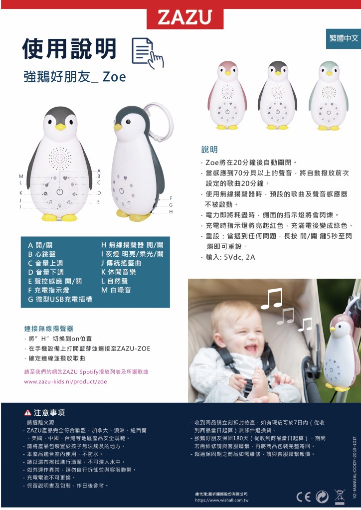 品牌超熱賣的經典強鵝好朋友,6種聲音模式:心跳聲、海浪聲、鳥鳴聲以及3首鋼琴輕音樂輪播。