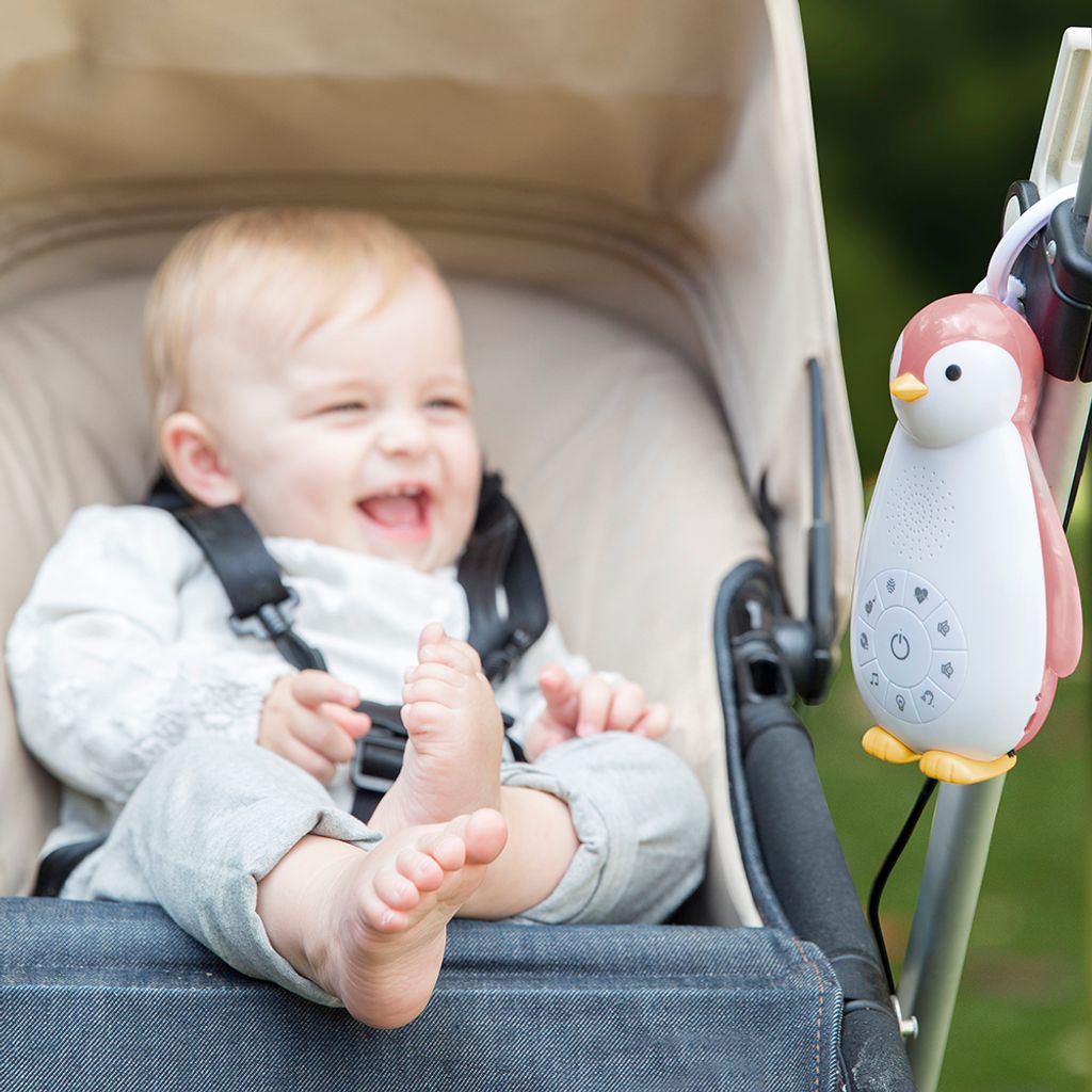 搭配舒緩的大自然音樂,3階段睡眠模式讓寶寶慢慢進入夢鄉,30分鐘將會自動關閉,感應到寶寶哭聲時又將自動開啟。