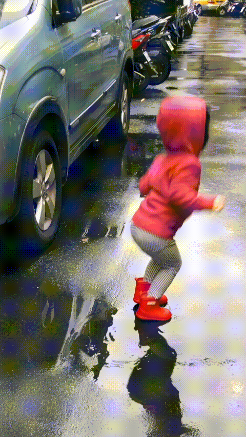 娘娘從小就是個雨鞋控,連大晴天都要穿著雨鞋,可能長大會是個長筒靴辣妹?