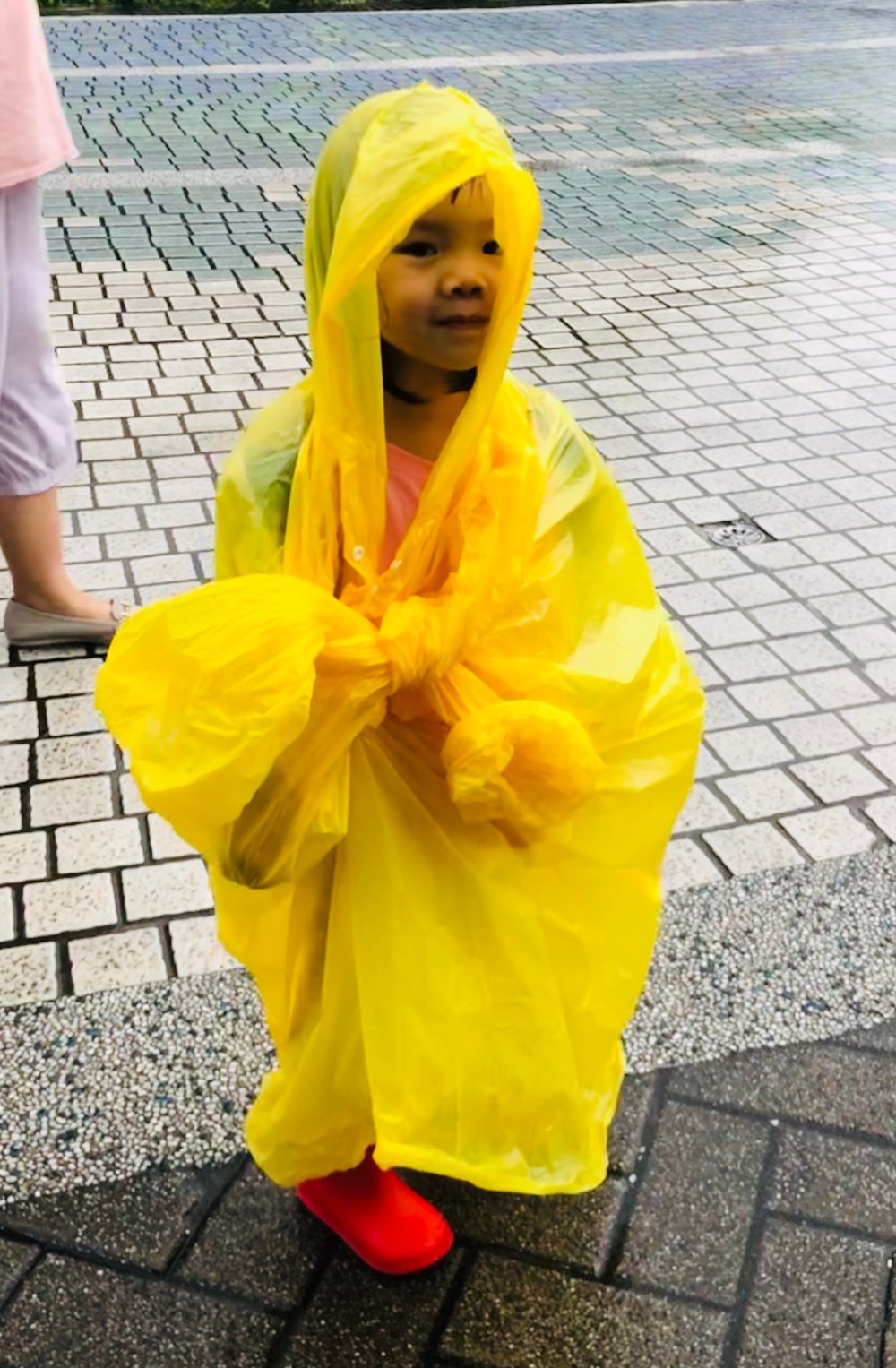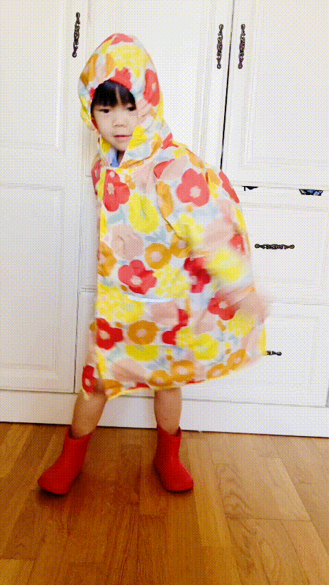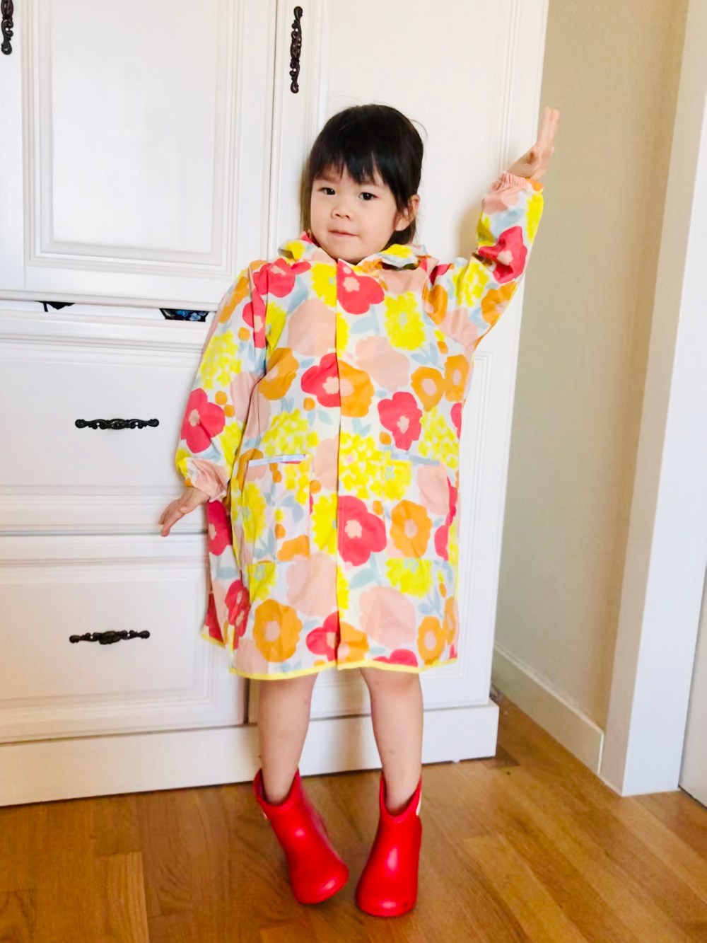 尤其接送娘娘上下學,下雨天車停得比較遠,媽媽一隻手要牽她,一隻手又要撐傘真的有點忙不過來,乾脆母女都穿上雨衣,安全又方便。