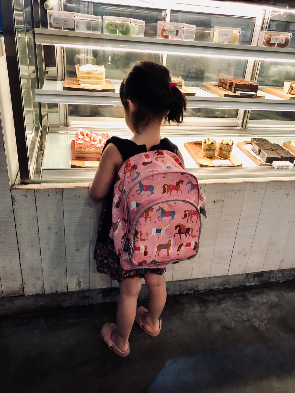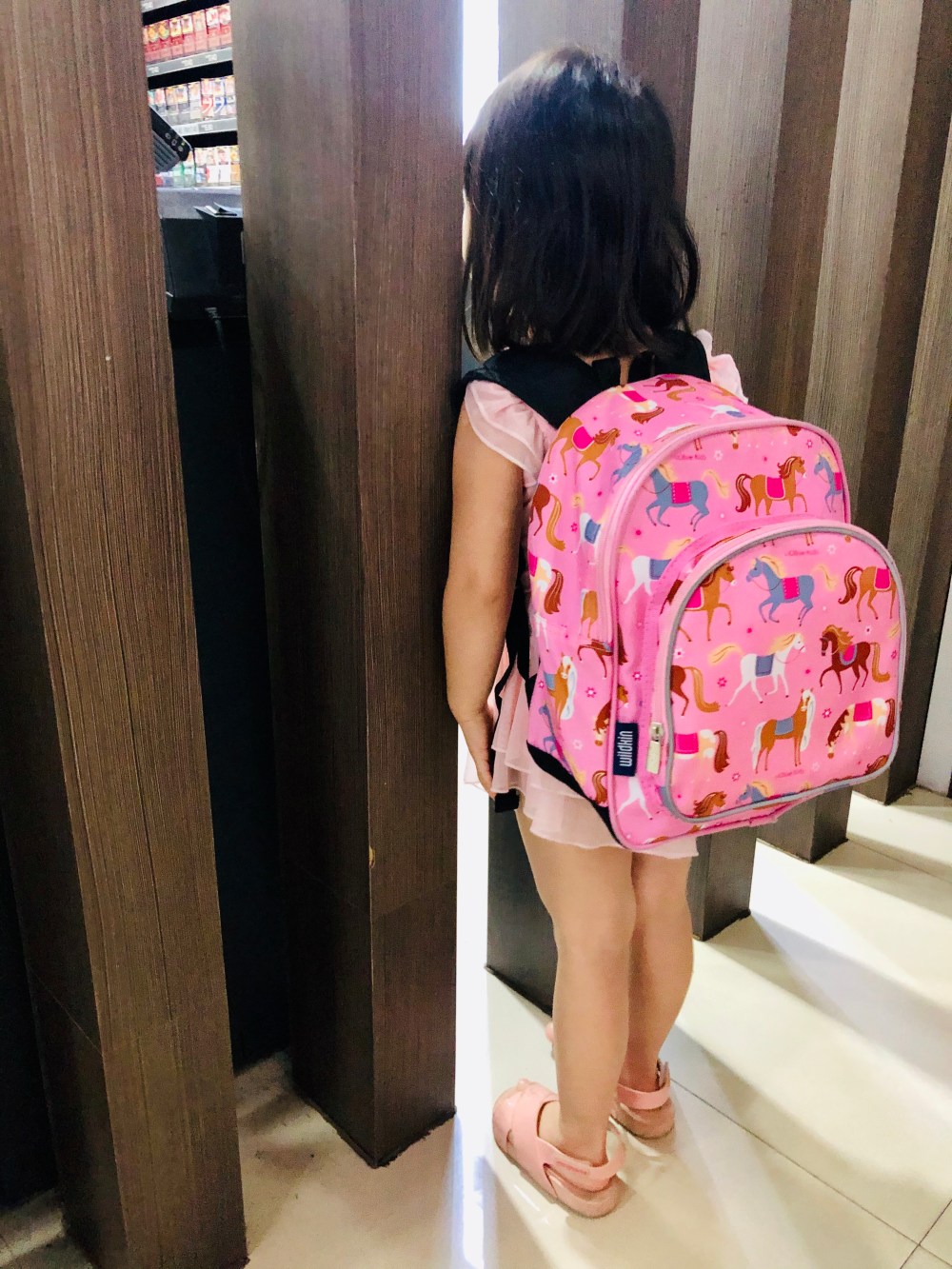 但妳也知道,孩子書包裡總是會有尿溼的褲子,沒吃完的點心,打翻的牛奶或水壺,三不五時就要拿去清洗,她那天就只能提個小手袋上學去,於是起了購買第二顆書包的念頭。