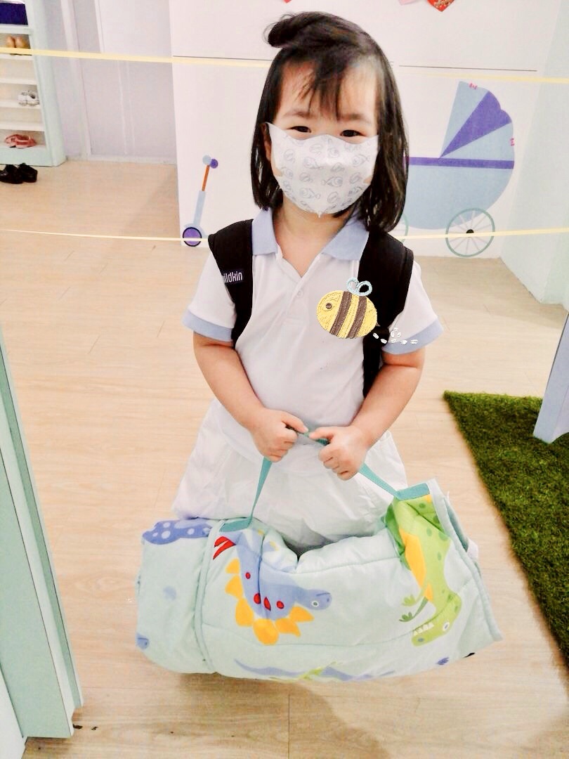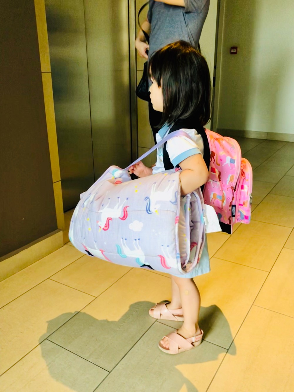 如果碰到台灣冬天特別冷,沒有暖氣空調的幼稚園,再帶一件毯子蓋在外面就夠了。