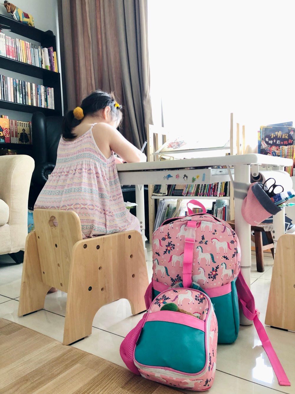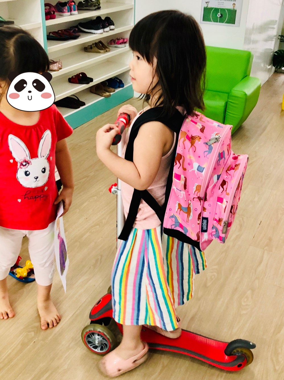 自己的上學用品自己背,像個小姐姐一樣的❤