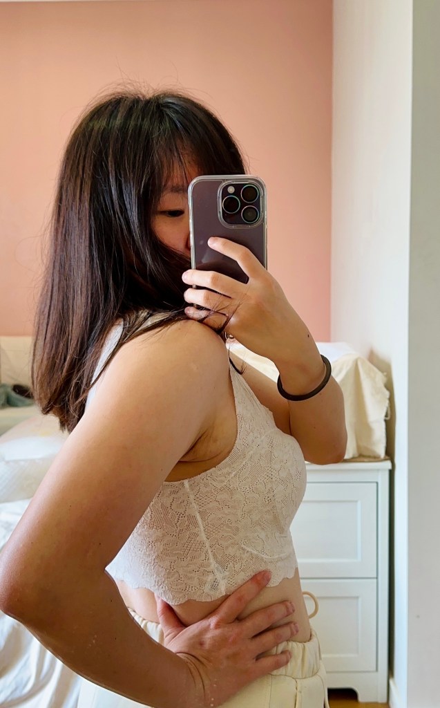 我是上半身肥胖,胸部有肉的類型,這件可以把肉肉包覆完整,同時也不會看起來胸部巨大,我很喜歡!