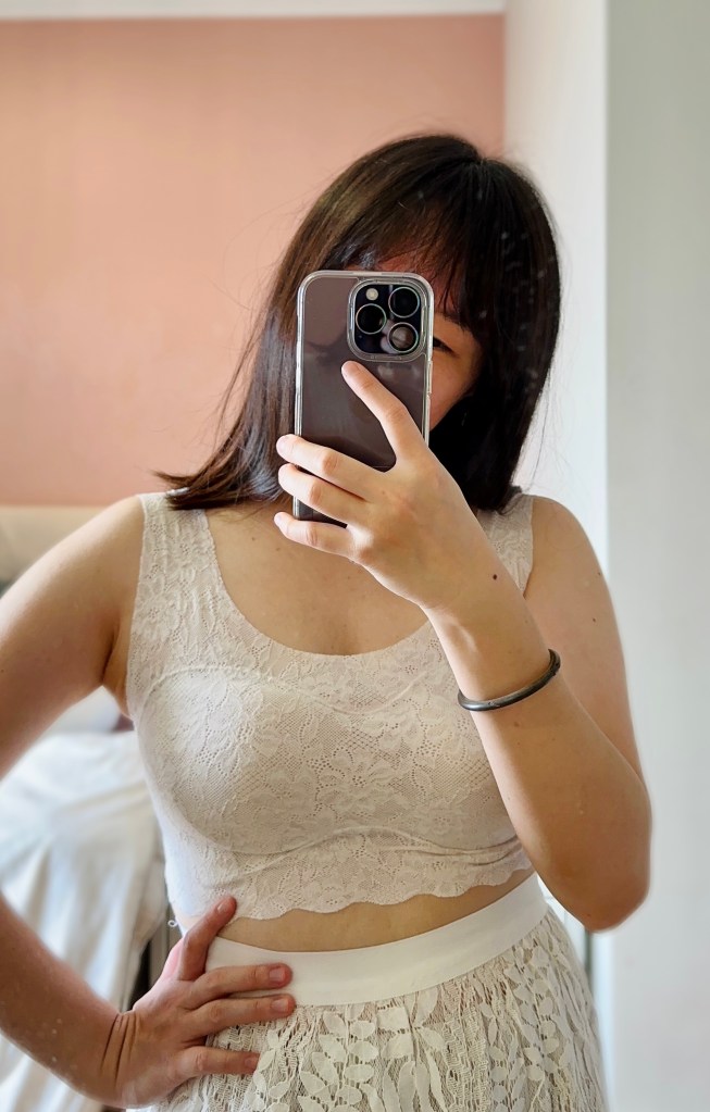 側邊比較低,如果很在意副乳的就不要選這款喔(我個人是副乳巨大,但穿在衣服裡我覺得沒問題)